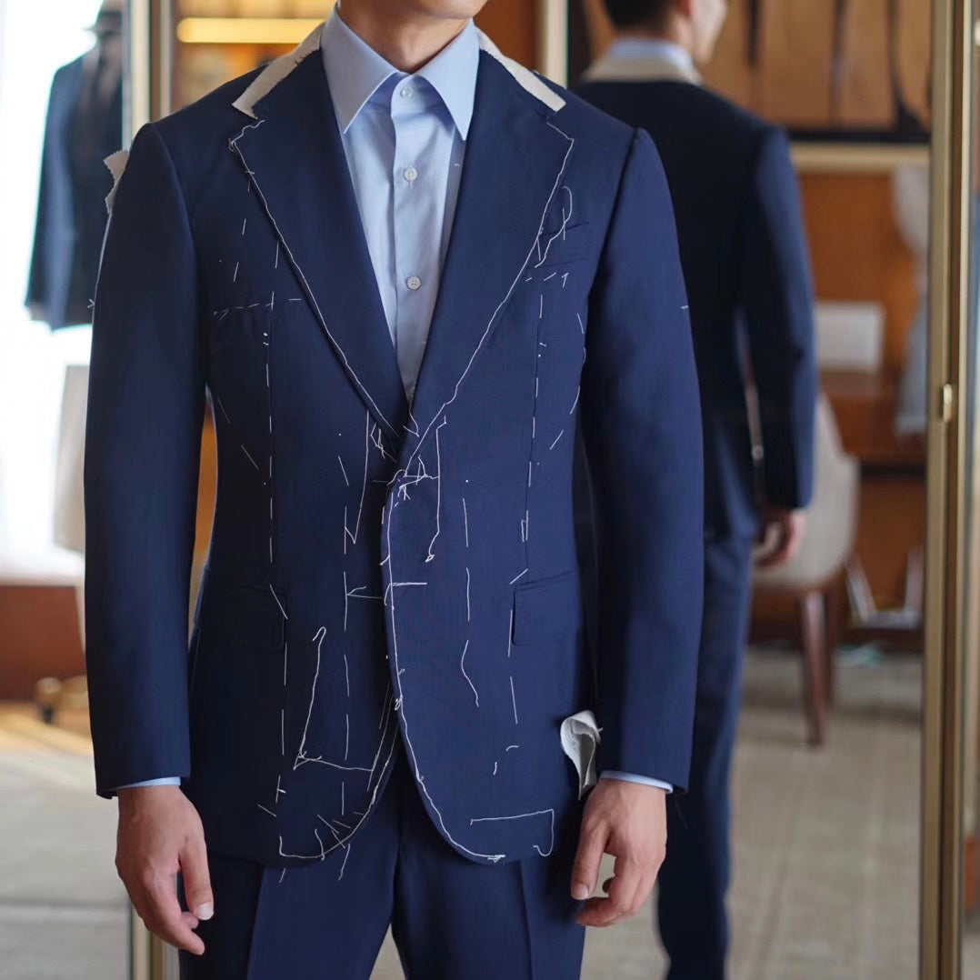 A basted garment will be finished within 2-3 weeks. During this stage, we assess balance, posture, and flow. A second fitting will be arranged if needed.