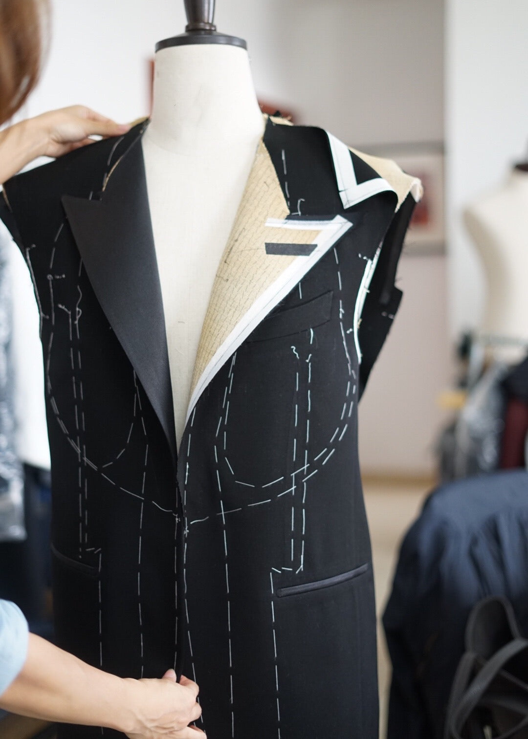38 measurements, 2–3 fittings, over 4,000 hand stitches, and more than 80 hours of craftsmanship — all dedicated to creating a garment exclusively for you. Each pattern is drafted by hand and refined through multiple stages of fitting and construction. The result, guided by traditional tailoring techniques, is a suit that fits as naturally and comfortably as a second skin.