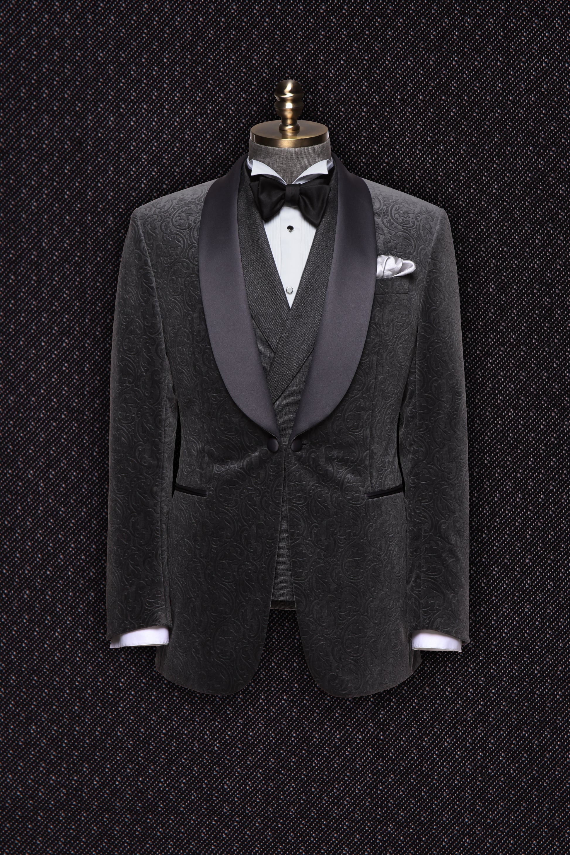 Grey Paisley Velvet Dinner Jacket – Shawl Lapel Edition